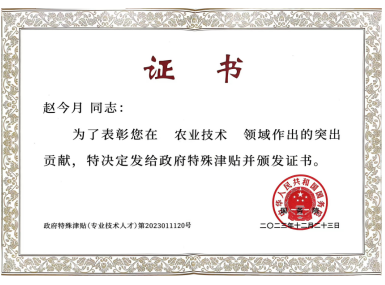 趙今月國務(wù)院特殊津貼證書